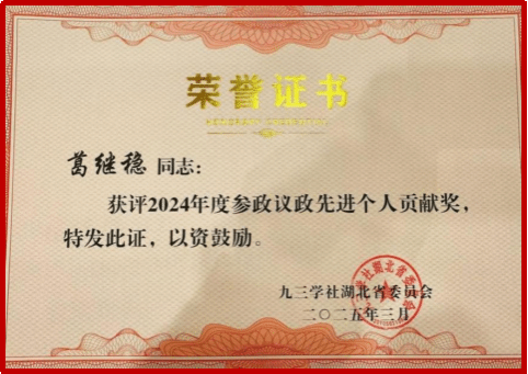 九三省委会2024年度参政议政先进个人贡献奖